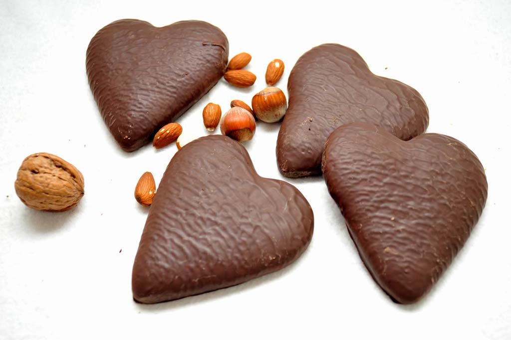 Zutaten: 25 % Schokoladenkuvertüre (Kakaomasse, Zucker, Kakaobutter, Emulgator: Sojalecithine, Bourbonvanille), Weizenmehl, Karamellzuckersirup, Roggenmehl, Invertzuckersirup, Gewürze, Backtriebmittel: Ammoniumhydrogencarbonat